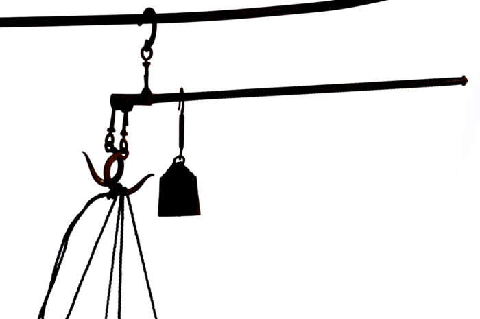 Col·loquem la mercaderia a pesar penjada del ganxo del segment curt de la barra. Lògicament, la barra s’inclinarà del costat de la mercaderia.