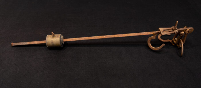 Col·leccions: Activitats comercials, Oficis i activitats, Utensilis i eines d'activitats comercialsAquest instrument (Státera romana) és un més de tantes variacions ideades per a mesurar masses (col·loquialment, “pesar”).