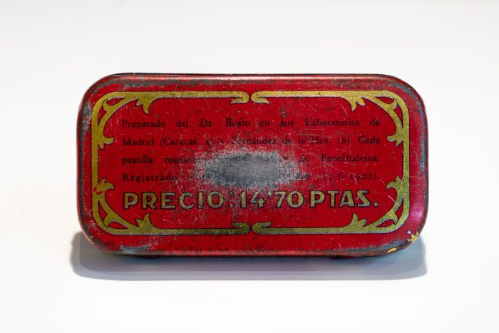 Col·leccions: Activitats comercials, Botica, Oficis i activitatsEls laxants són majoritàriament consumits per a tractar el restrenyiment. Hi ha de diversos tipus segons la seua activitat. Concretament en aquesta fitxa es mostra un producte laxant de principis del segle XX que es venia en comprimits envasats en una caixa metàl·lica.