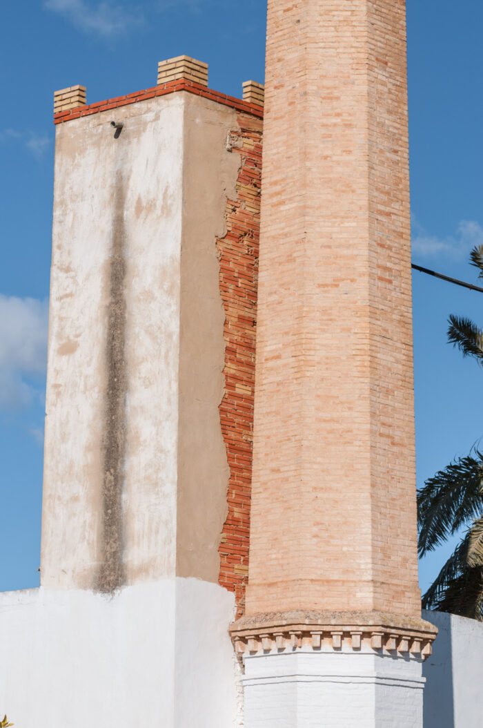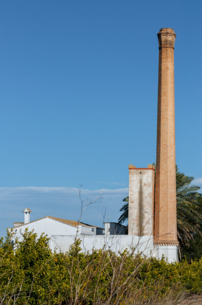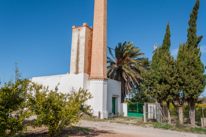 Aquest antic motor de vapor que encara conserva el fumeral, la caseta on s’allotjava el motor i la bassa de regulació, hui en dia òbviament en desús.